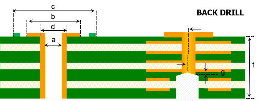 | Back Drill | BDHS (E) | d + 6mil / 0.20mm (CCD) | |